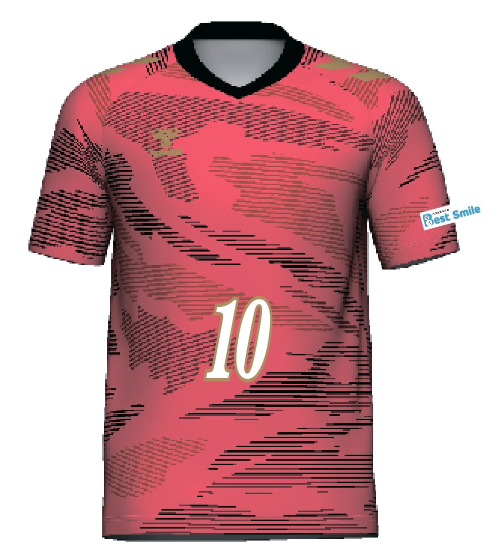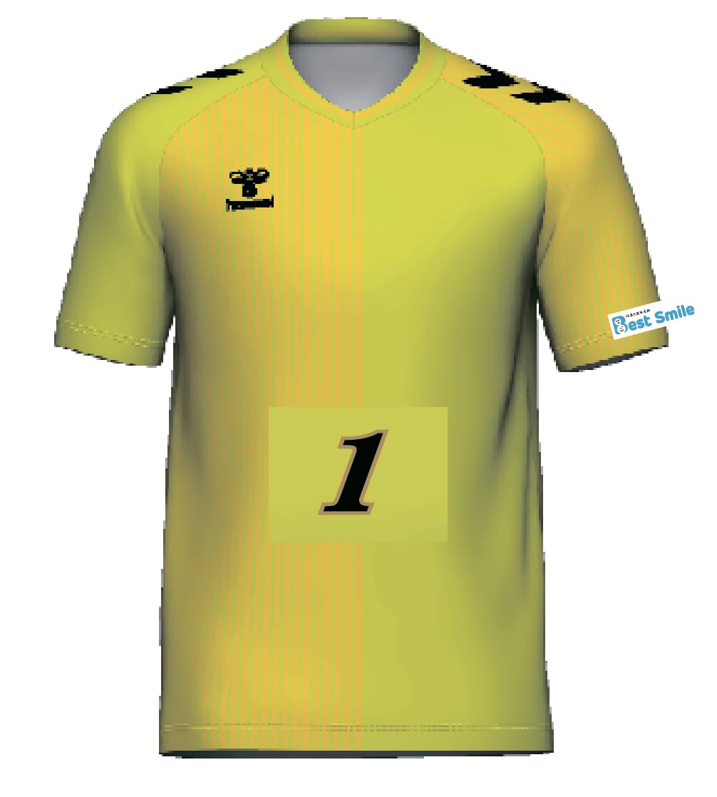 ホームユニフォームはヒュンメルカスタムオーダーをベースに特注色を使って仕上げています。エンブレムはPVC製です。刺繍と比べ凹凸が表現しやすく発色も良いです。